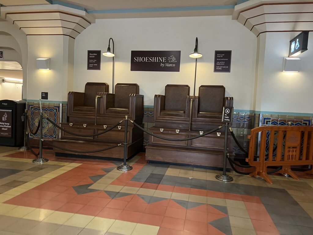 ちなみにFlyawayの乗降場所から駅構内に入った場合、手前にPacific Surf Linerの券売機があり、プラットホームに上がる階段がある通路を超えた先にAmtrakの券売機があります。