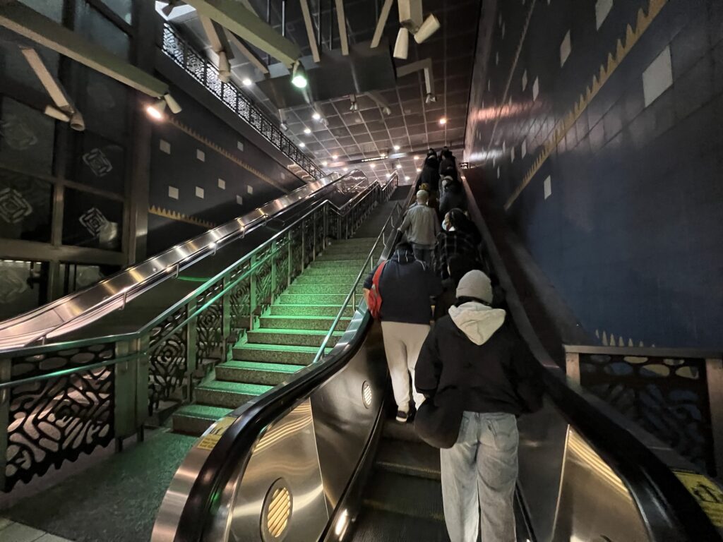 ユニバーサルシティに着いたらもうUSHは目前!と言いたいところですが、意外とここからも距離があります。ユニバーサルシティの名を関している駅ではあるものの、大阪のUSJや北京のUSBとは異なり、ユニバーサルシティウォークと直結はしていません。パークとシティウォークはどちらも丘の上にあるので、そこまで無料のトラムに乗車するか、徒歩で向かう必要があります。