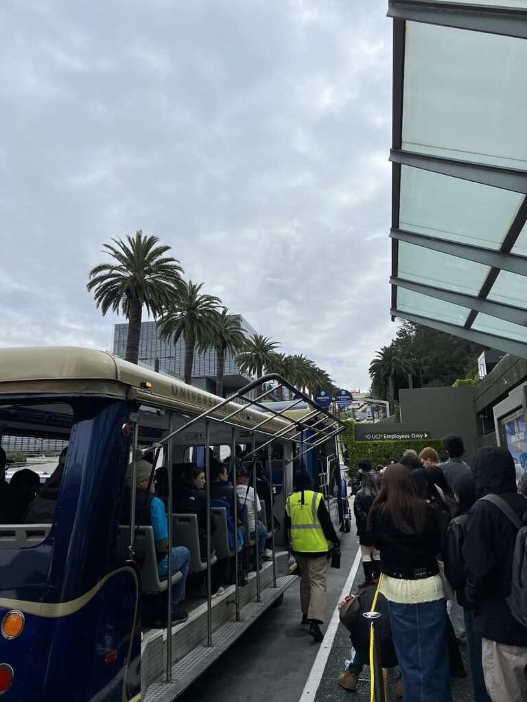 DLRからフラートン駅まではバス、ユニバーサルスタジオ駅からUSHまではシャトルバスで移動します。全体の所要時間は大体2時間〜2時間半ぐらい。もし1日のうちに往復するなら5時間弱を移動時間に費やす必要があるため、実際問題めちゃめちゃ使いづらいです。